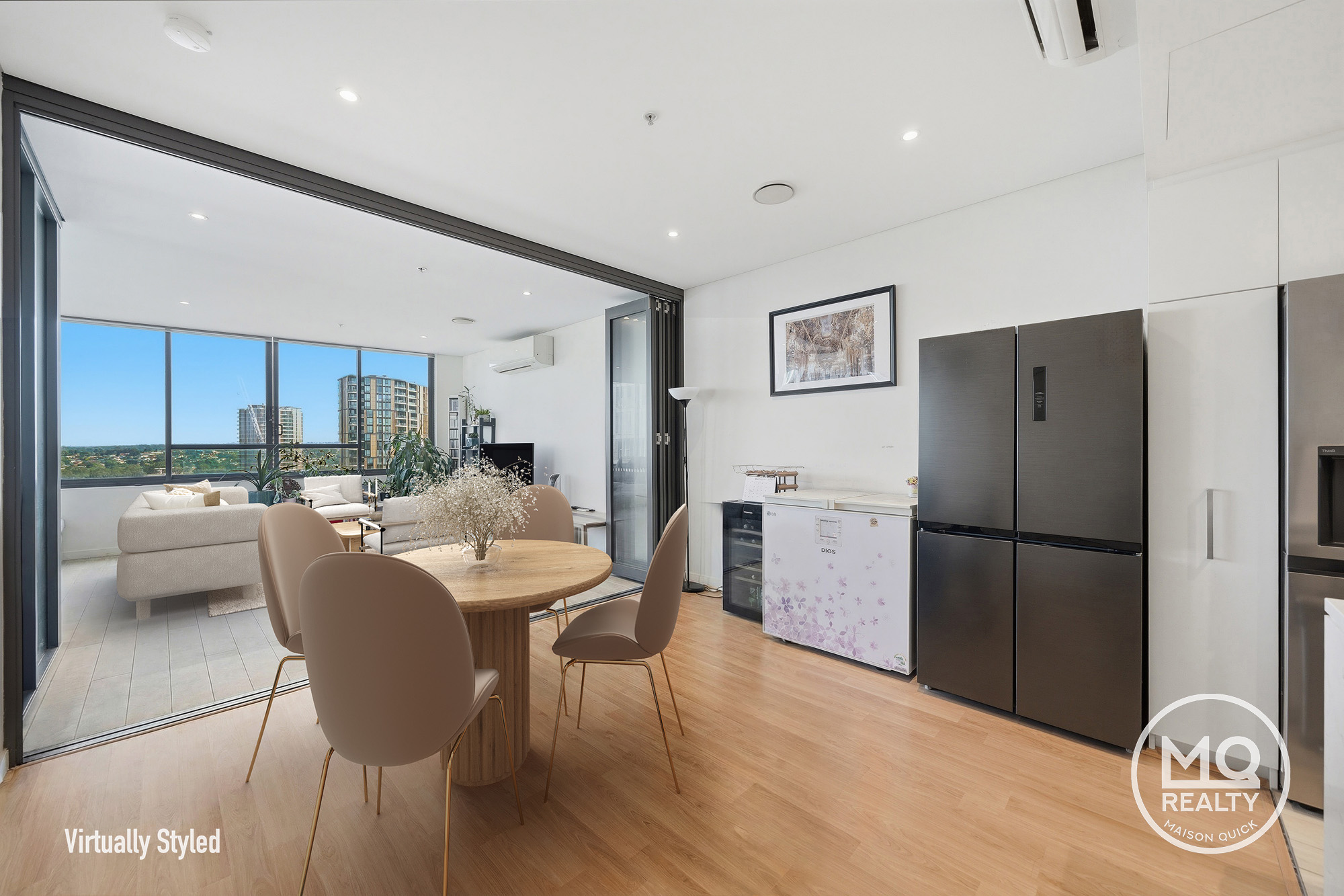 A true highlight is the expansive curved winter garden with timber flooring, seamlessly extending the living space and offering the perfect setting to relax or entertain while enjoying stunning sunset and skyline views.