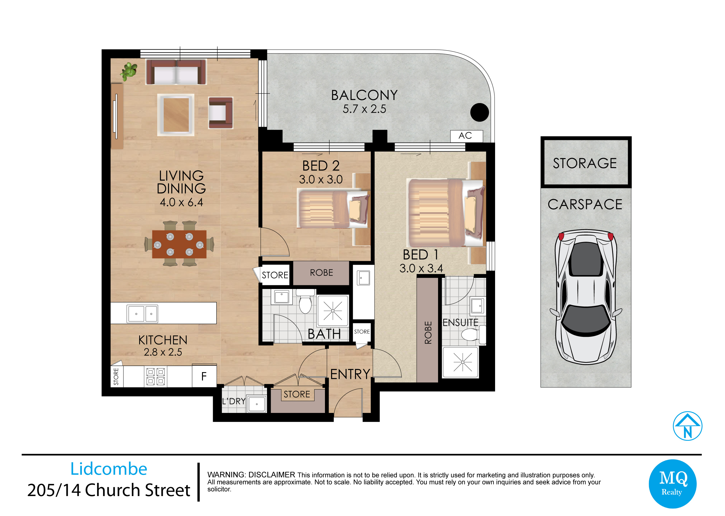 • Covered balcony with bright, north-facing aspect