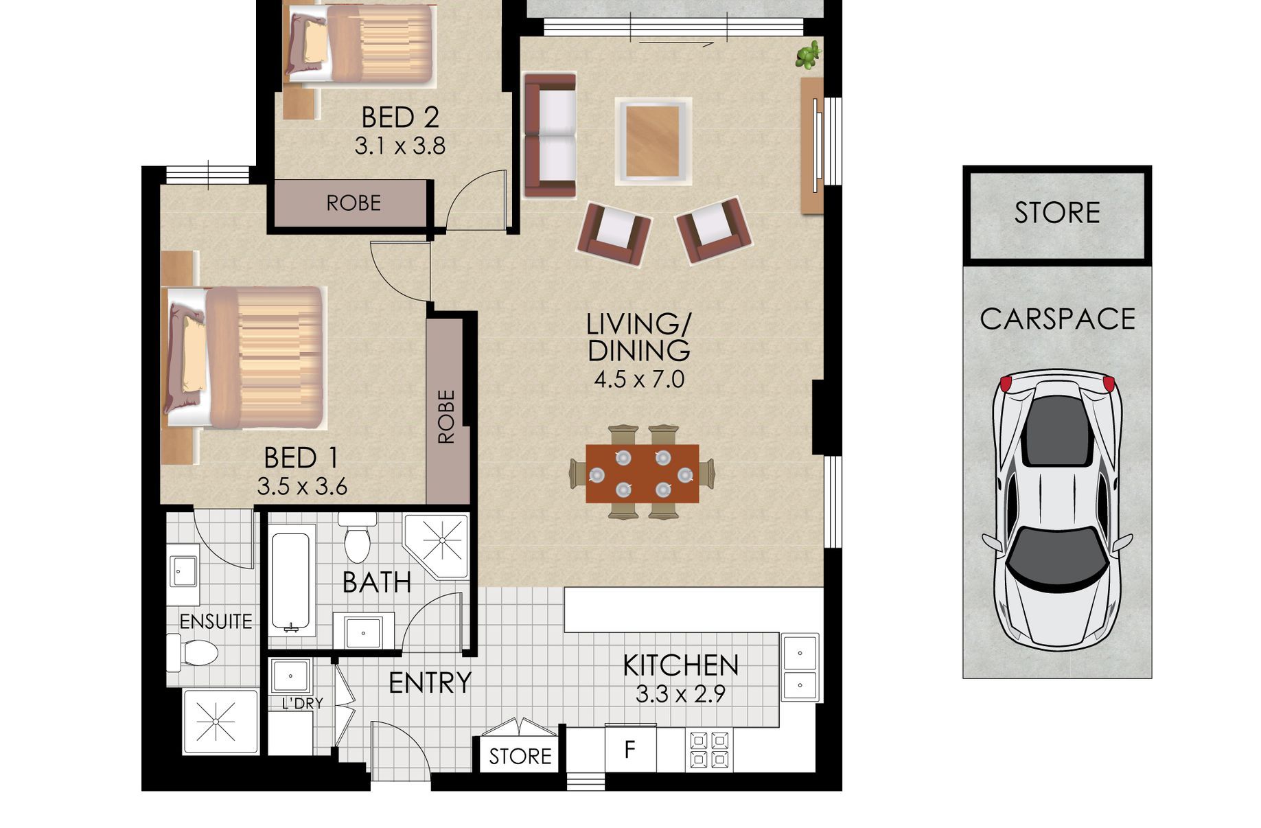 > Generous 2 Bedrooms