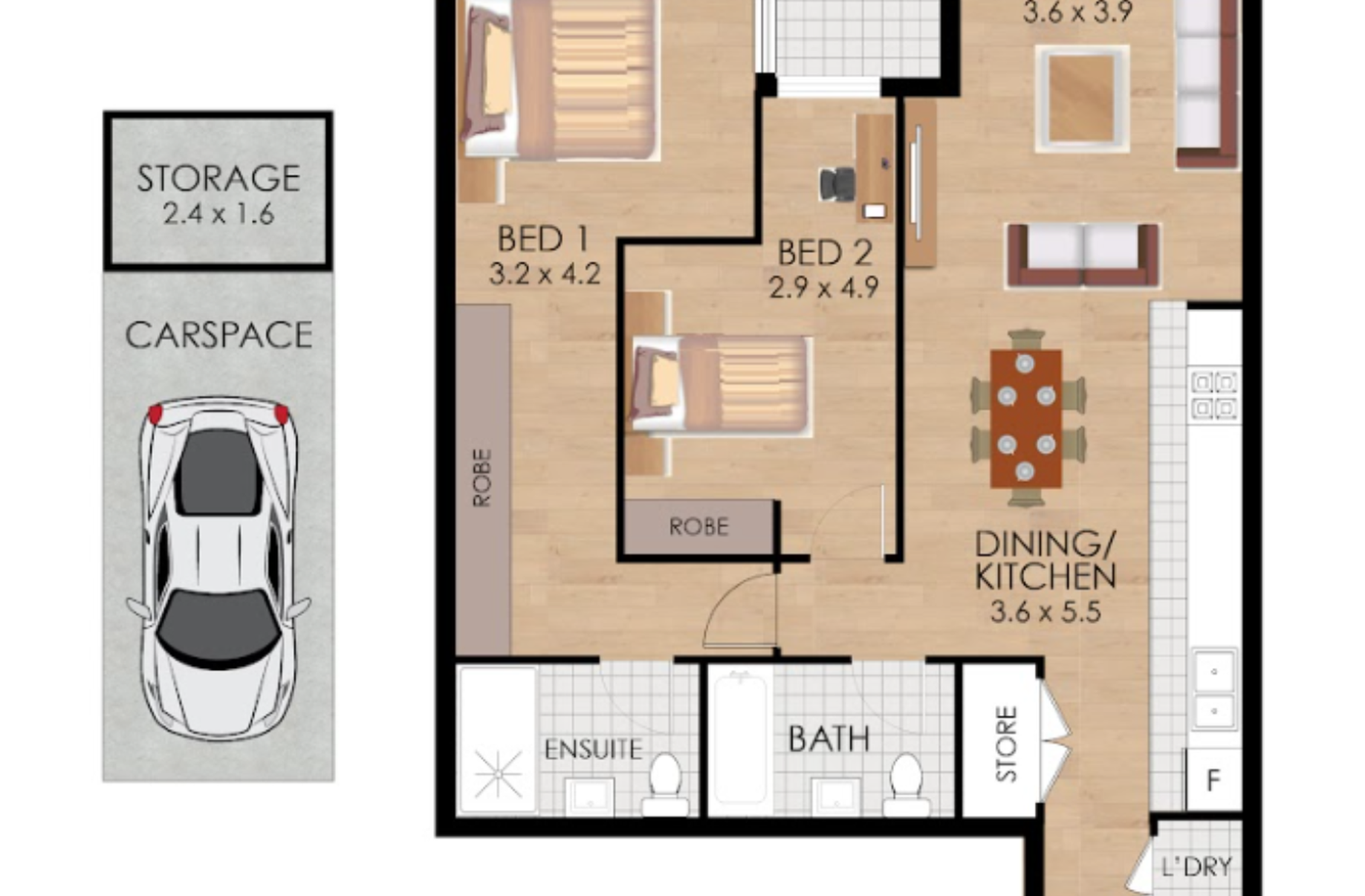 • 2Bedrooms
