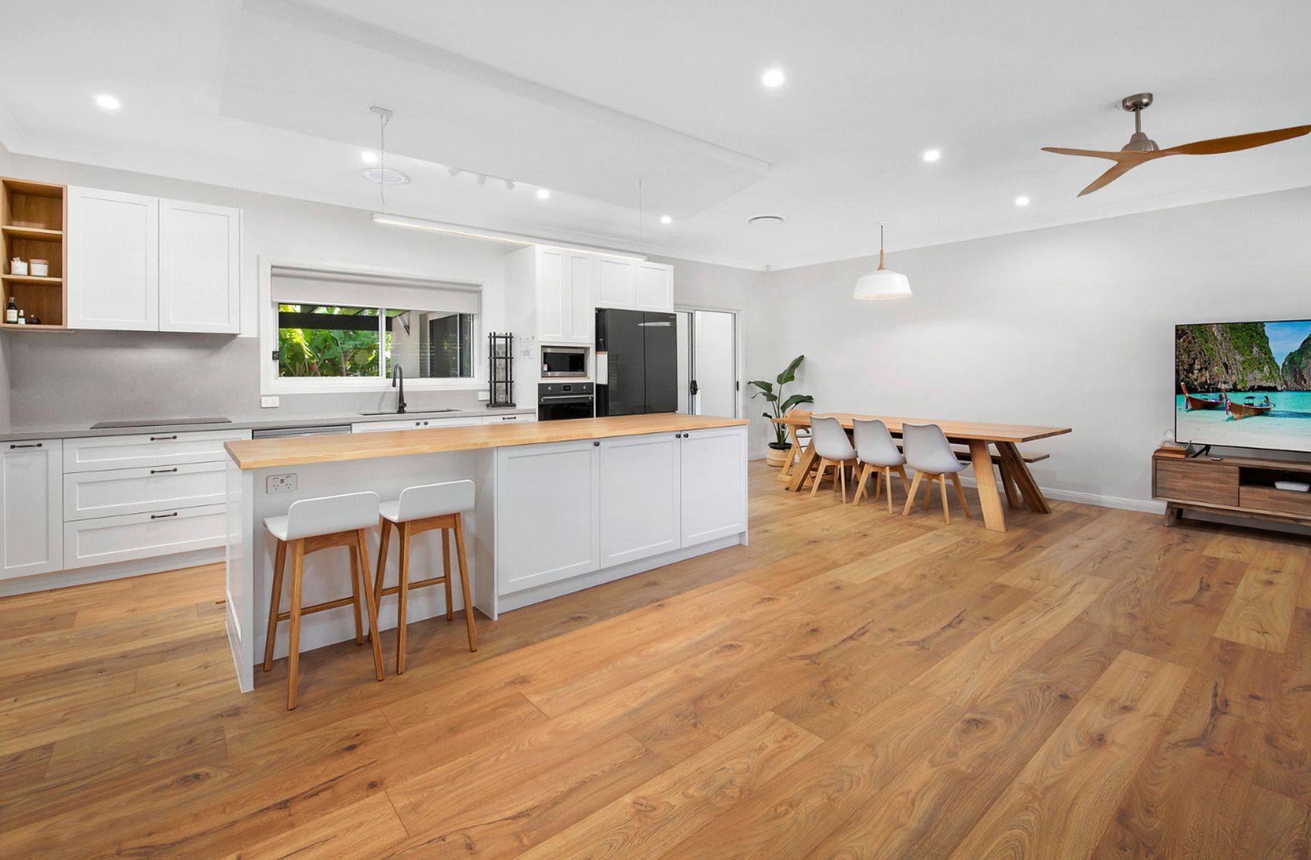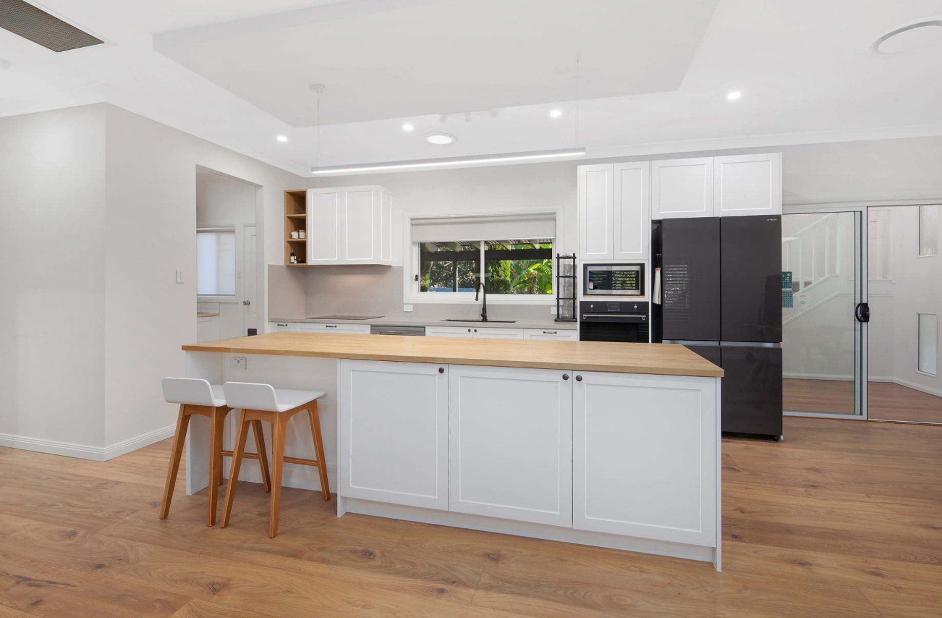 - Central sun-filled kitchen boasts stone benchtops and a Miele dishwasher